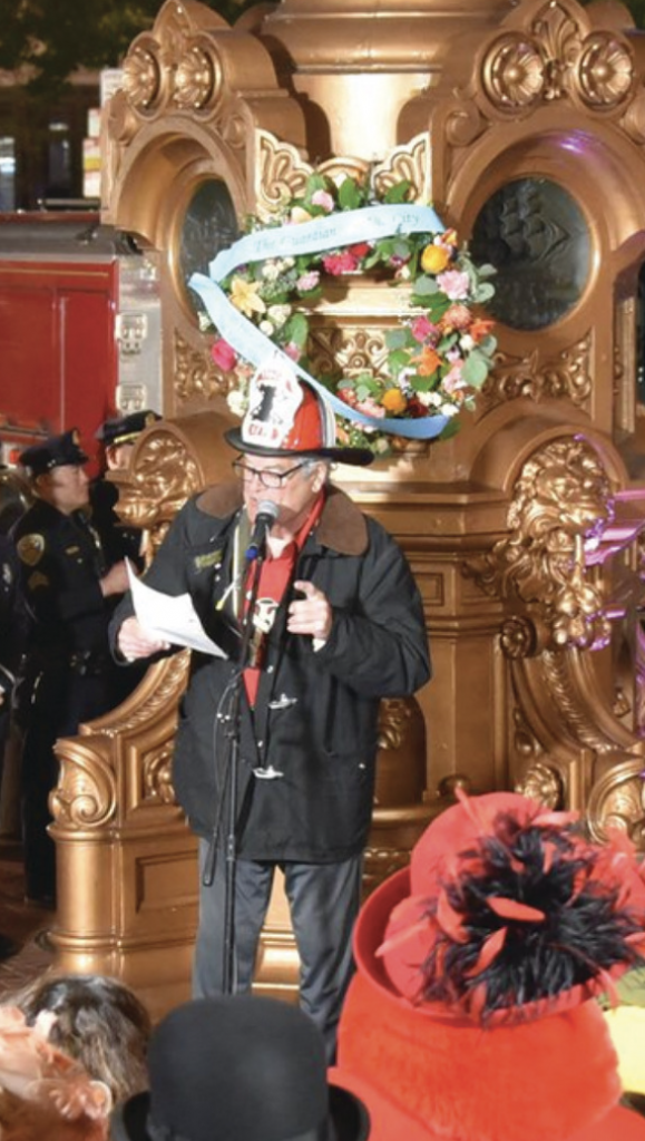 The 120th Anniversary of the 1906 Earthquake and Fire was commemorated with a pre-dawn ceremony at Lotta’s Fountain at the intersection of Market, Geary, and Kearny streets on April 18, 2026. The program was led by Bob Sarlatte, the “voice of the 49ers,” who led a riveting retelling of what happened during that fateful day and period in San Francisco’s history.