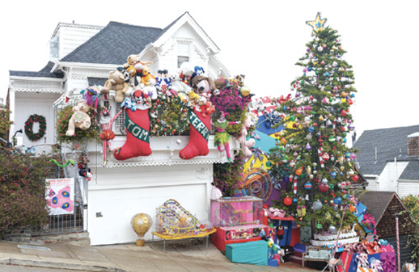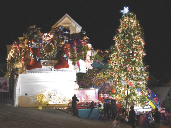For decades, the late Tomas Jesse Taylor and Jerome Goldstein, M.D., affectionately known as Tom & Jerry, opened their sprawling home at 3650 21st Street to the public during the holiday season. There, visitors would find Santa Claus greeting children and handing out treats alongside giant mechanical toys, choirs, and much more. The star attraction was the 65-foot tree that the couple would decorate each year via a forklift. The tree was originally purchased at Cost Plus and grew rapidly each year, like Jack’s beanstalk from the fairytale. While Tom & Jerry are no longer with us and the tree is no longer a public attraction, the memory of their magical display lives on.