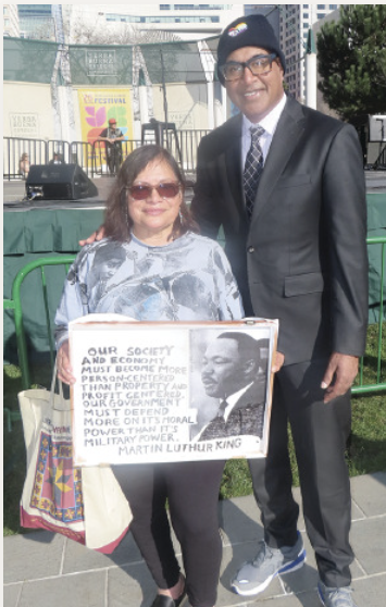 The large crowd gathered at Yerba Buena Gardens cheered for speakers, including civic, community, and interfaith leaders, and numerous musicians who performed. The event was part of the culmination of a weeklong observance from January 13–19, which is led by the Northern California Dr. Martin Luther King, Jr., Community Foundation: https://norcalmlkfoundation.org/
