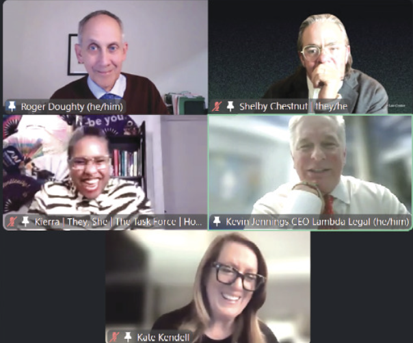 As 2025 drew to a close, Horizons Foundation hosted the organization’s 22nd annual State of the Movement event virtually on Thursday, December 4, offering a candid yet forward-looking assessment of LGBTQ political realities. Horizons President Roger Doughty moderated the 90-minute discussion and Q&A with four powerhouse national LGBTQ leaders: Shelby Chestnut, Executive Director of the Transgender Law Center; Kevin Jennings, CEO of Lambda Legal; Kierra Johnson, President of the National LGBTQ Task Force; and former San Francisco Bay Times columnist and NCLR leader Kate Kendell, who is now the CEO of The Gill Foundation. The mood was sober but not defeatist.