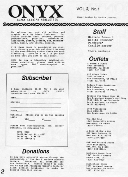 From the GLBT Historical Society Periodicals Collection: Onyx: Black Lesbian Newsletter