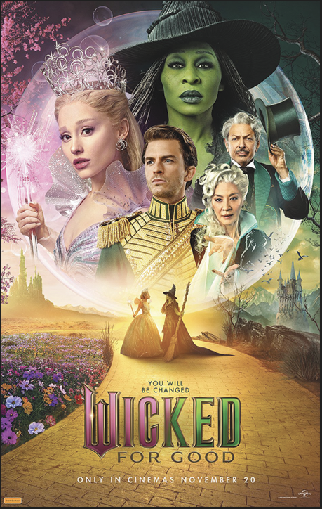 A fun way out of this darkness is a double feature: Wicked and Wicked: For Good. See them on the big screen for the gorgeous sets, costumes, and music. The new film is fun, better than the last one, and a reminder that, when Hollywood goes full-on about storytelling, it is joyful and a blast.