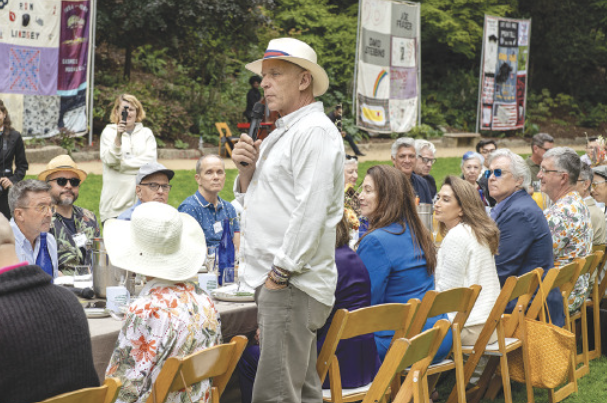 The National AIDS Memorial launched its 35th Anniversary year with Al Fresco in the Grove, a unique outdoor gathering where more than one hundred community members—volunteers, long-time board members and alumni, community partners, donors, and public officials—came together at a single-family table set within the National AIDS Memorial Grove in Golden Gate Park.