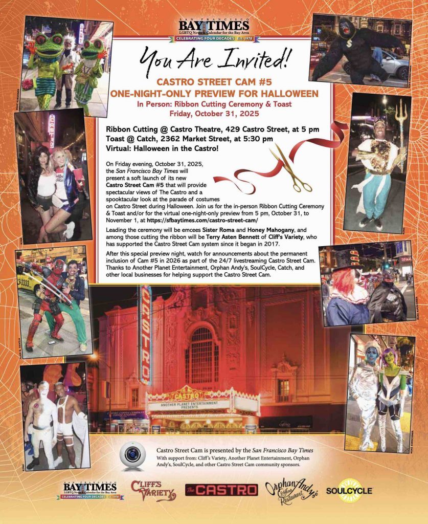 Come in person or be sure to tune in for the special Halloween night livestream via the Castro Street Cam!