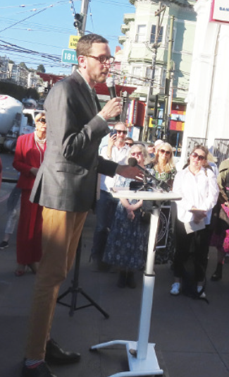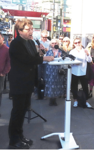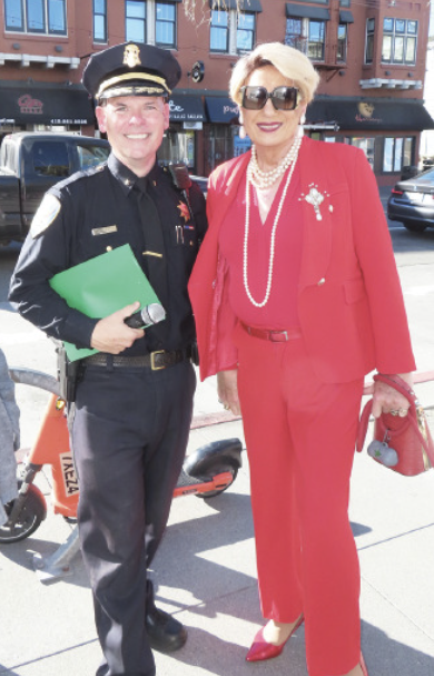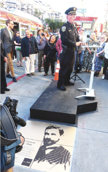 The ceremony was led by San Francisco Bay Times columnist Donna Sachet, who serves as President of the Rainbow Honor Walk Board of Directors. A highlight of the ceremony was the performance of a song in Gaelic by Commander Jack Hart of the San Francisco Police Department.