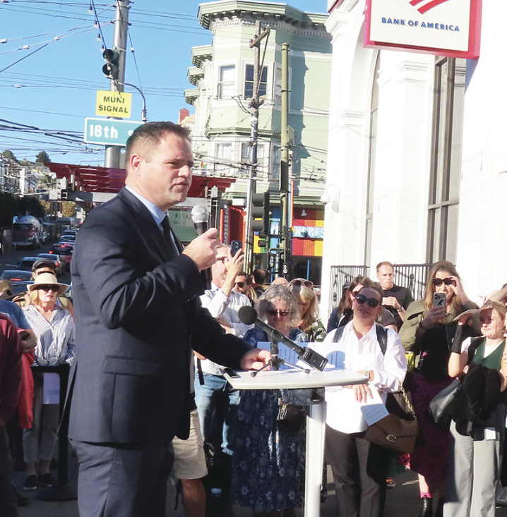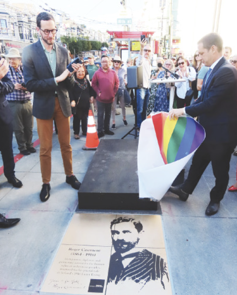 Michael Smith, the Irish Consul General in San Francisco, and San Francisco Mayor Daniel Lurie unveiled the newest plaque on the Rainbow Honor Walk; it honors Irish human rights activist Roger Casement (1864–1916). The October 28, 2025, ceremony took place outside 501 Castro Street, near the Bank of America building.