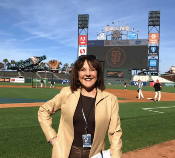Waldman’s knowledge of baseball is also astounding, not to mention her meaningful friendships with players and managers past and present from multiple teams. Their mutual respect carries through her work. It was sweltering on March 27 at Oracle Park, but Waldman—wearing a cool, crisp white shirt and elegant pants—strode onto the field with more chutzpah than Meryl Streep as Miranda Priestly in The Devil Wears Prada.