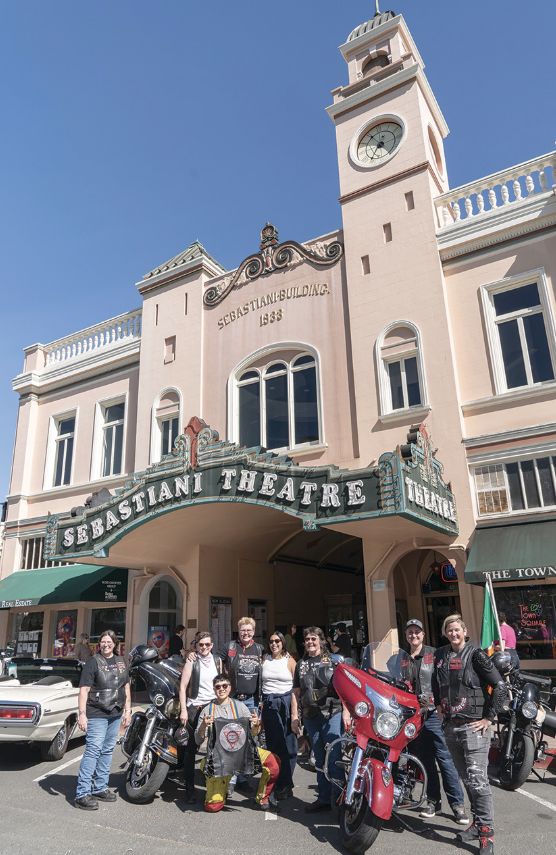 (right) San Francisco Dykes on Bikes® gathered in front of the Sebastiani Theater, which they went to for a screening of Beyond the Rainbow presented by Sonoma Valley Pride (March 15, 2026).