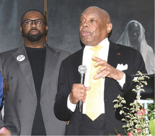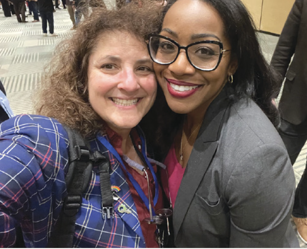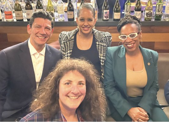 Louise “Lou” Fischer” (front) with CADEM Convention attendees, including Representative Lateefah Simon (right)