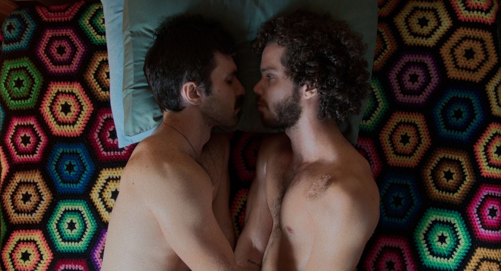 Out gay Brazilian actor Lucas Drummond casts a spell in the hypnotic, erotic film Only Good Things, available on VOD February 17.The actor plays Antônio, a farmer and cheesemaker, who takes in Marcelo (Liev Carlos), a stranger who had a motorcycle accident, and they share a tender, loving romance. Their story, set in 1984, forms the first half of the drama, which picks up decades later with an older Antônio (Fernando Libonati) dealing with the sudden disappearance of his husband, Marcelo.
